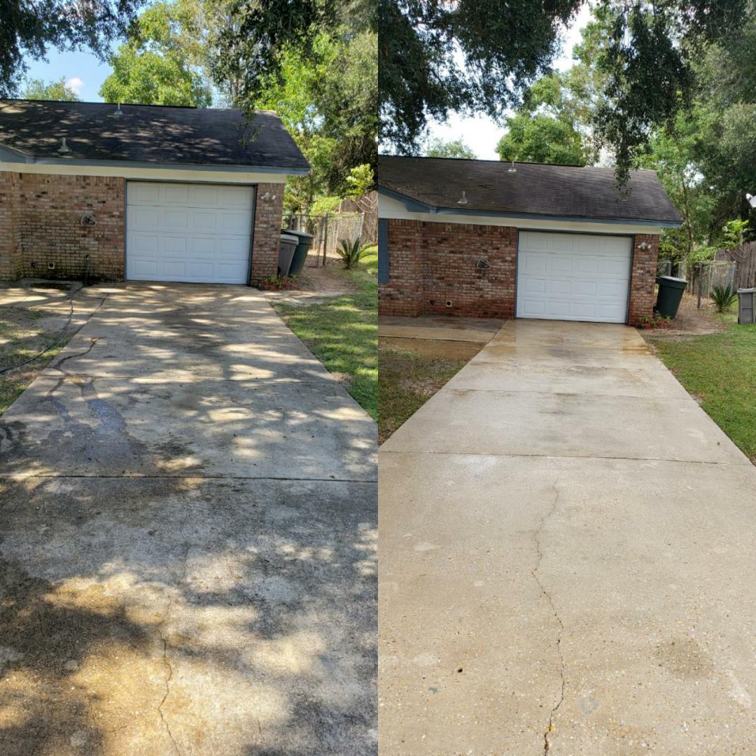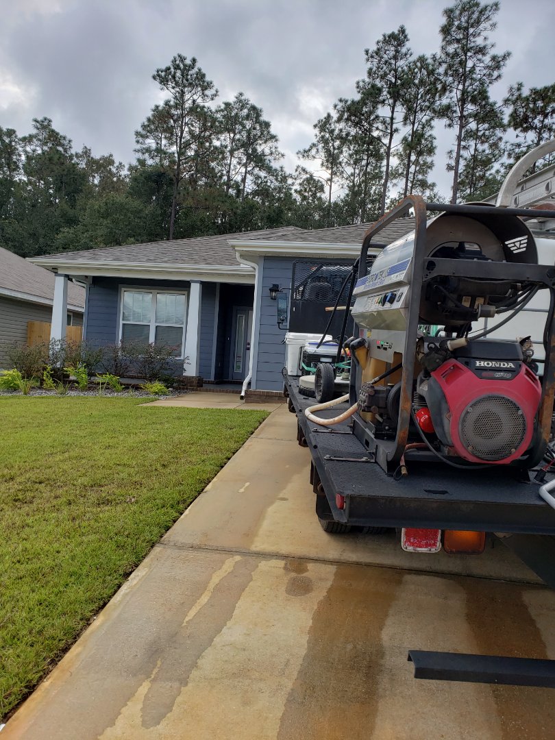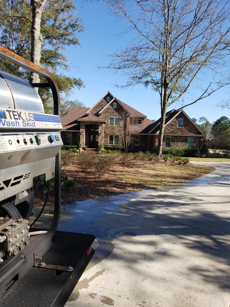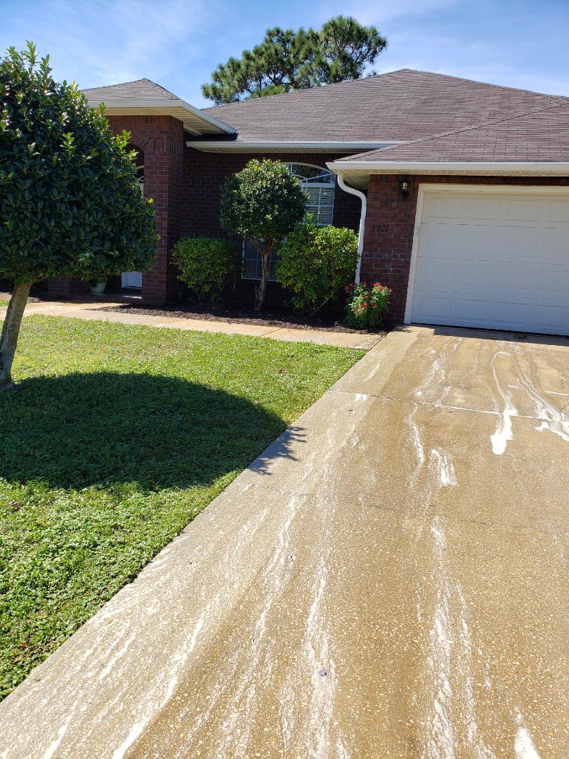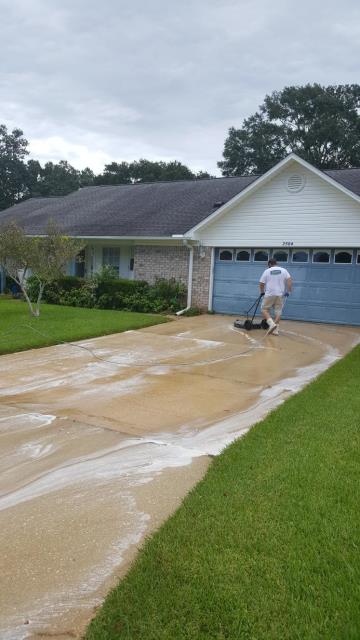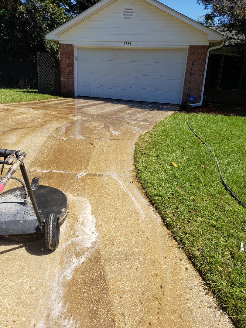 Pressure washing house, driveway and sidewalk Nature Trail Pensacola Florida.