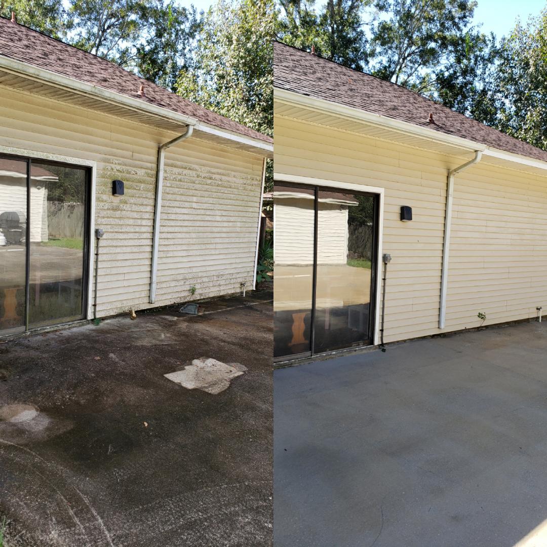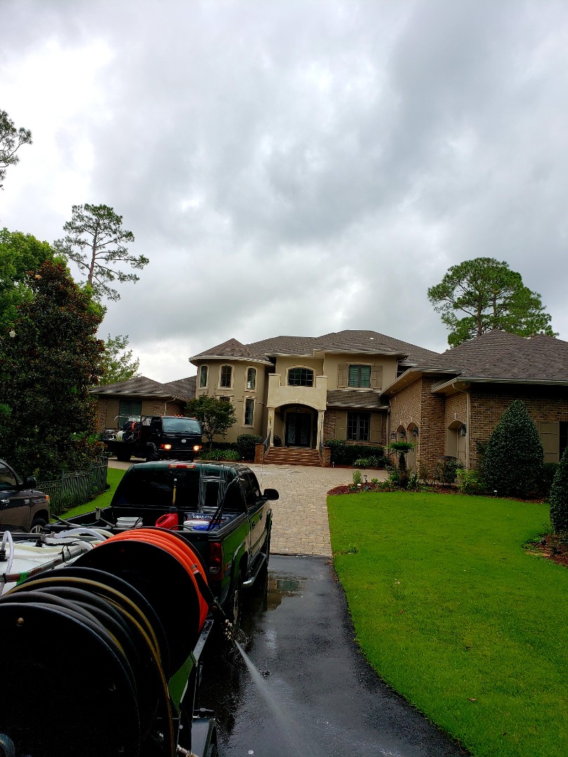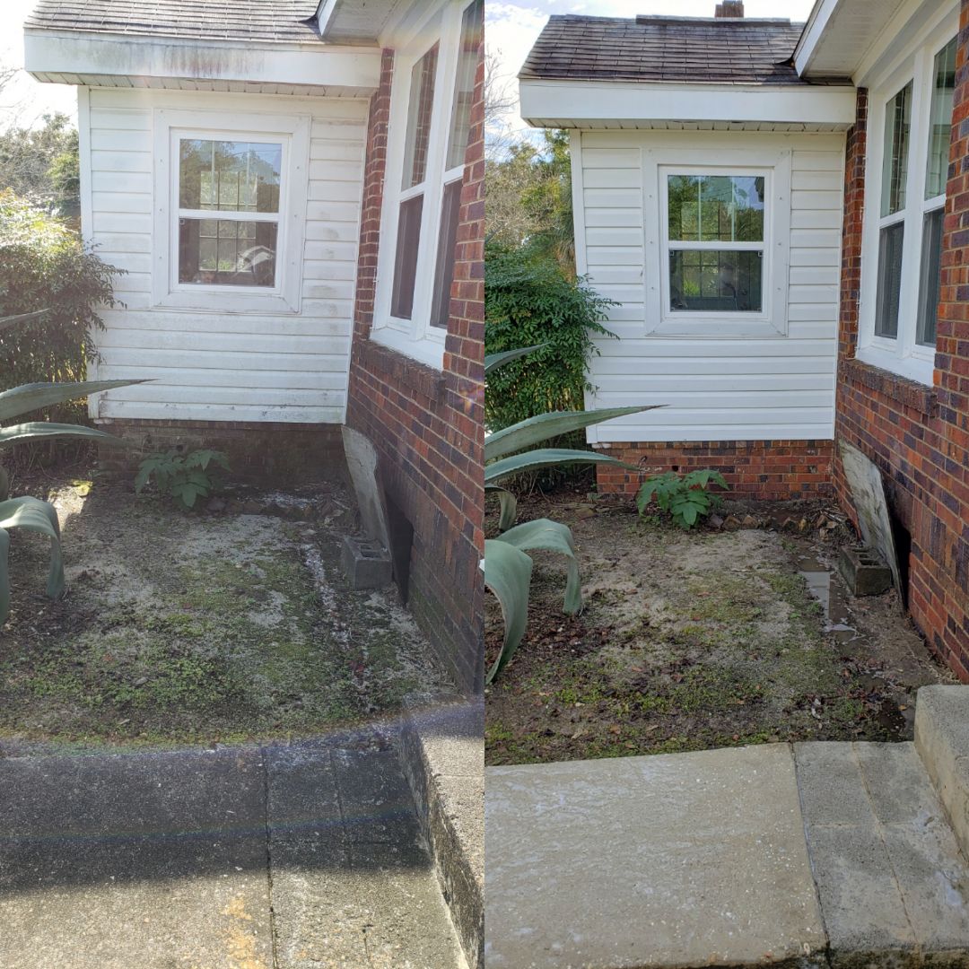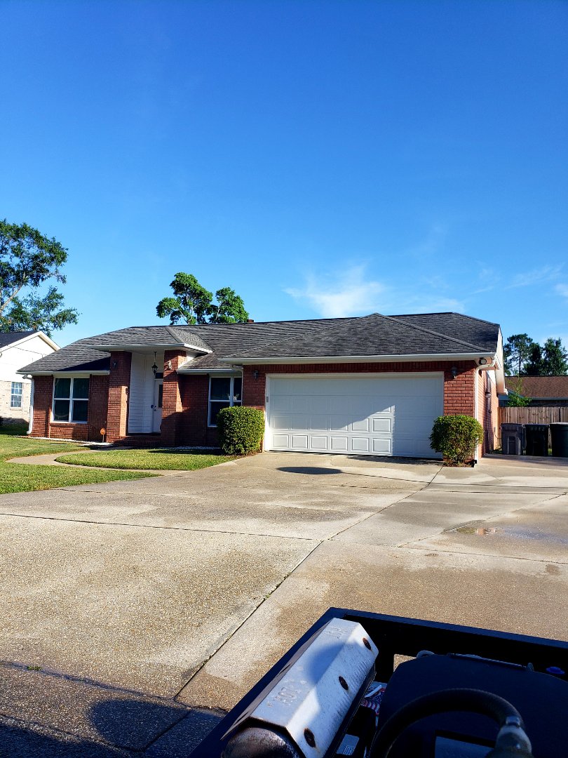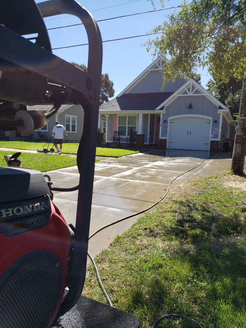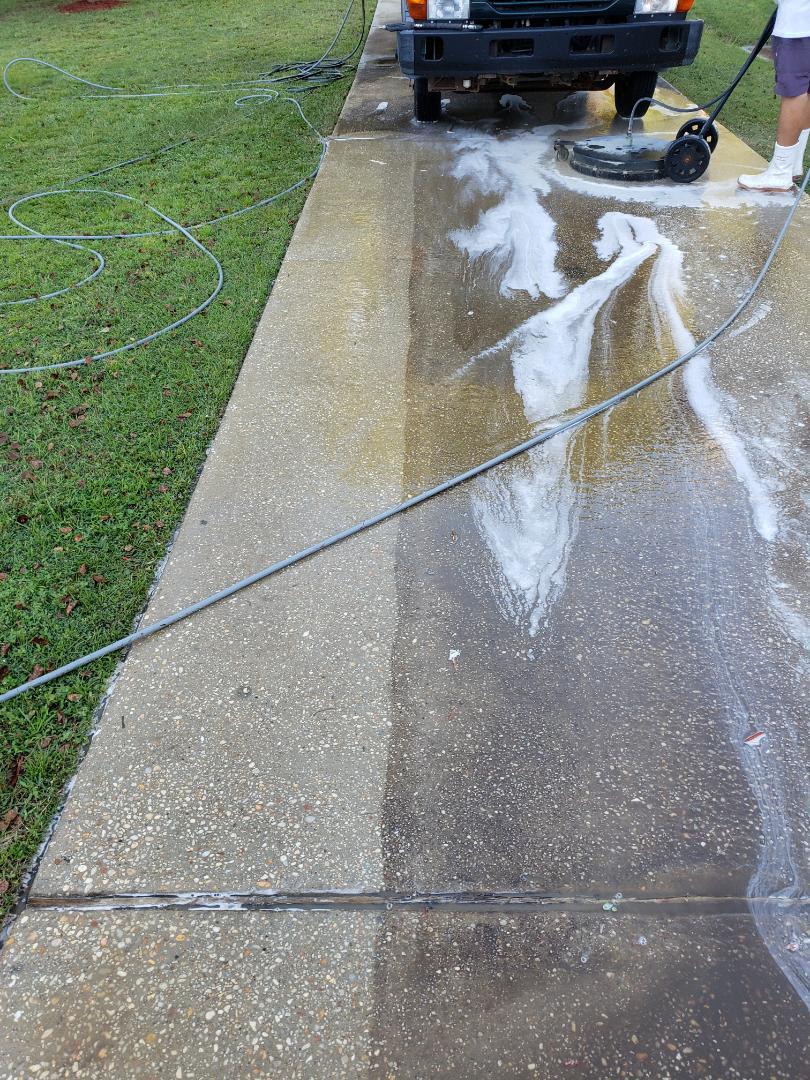 Pressure washing house, driveway and sidewalk Nature Trail Pensacola Florida.