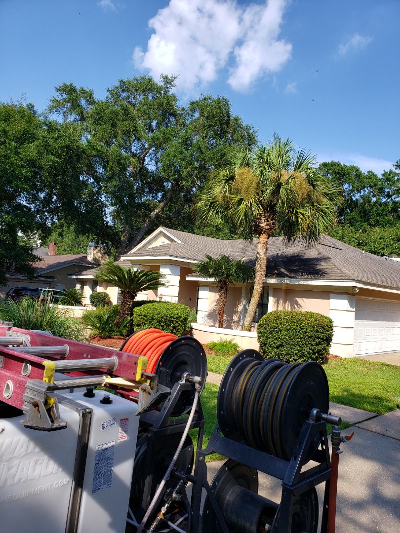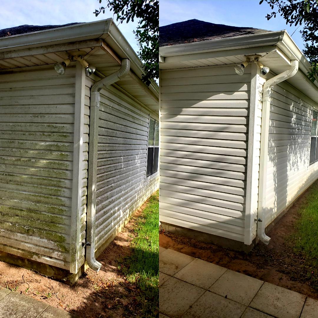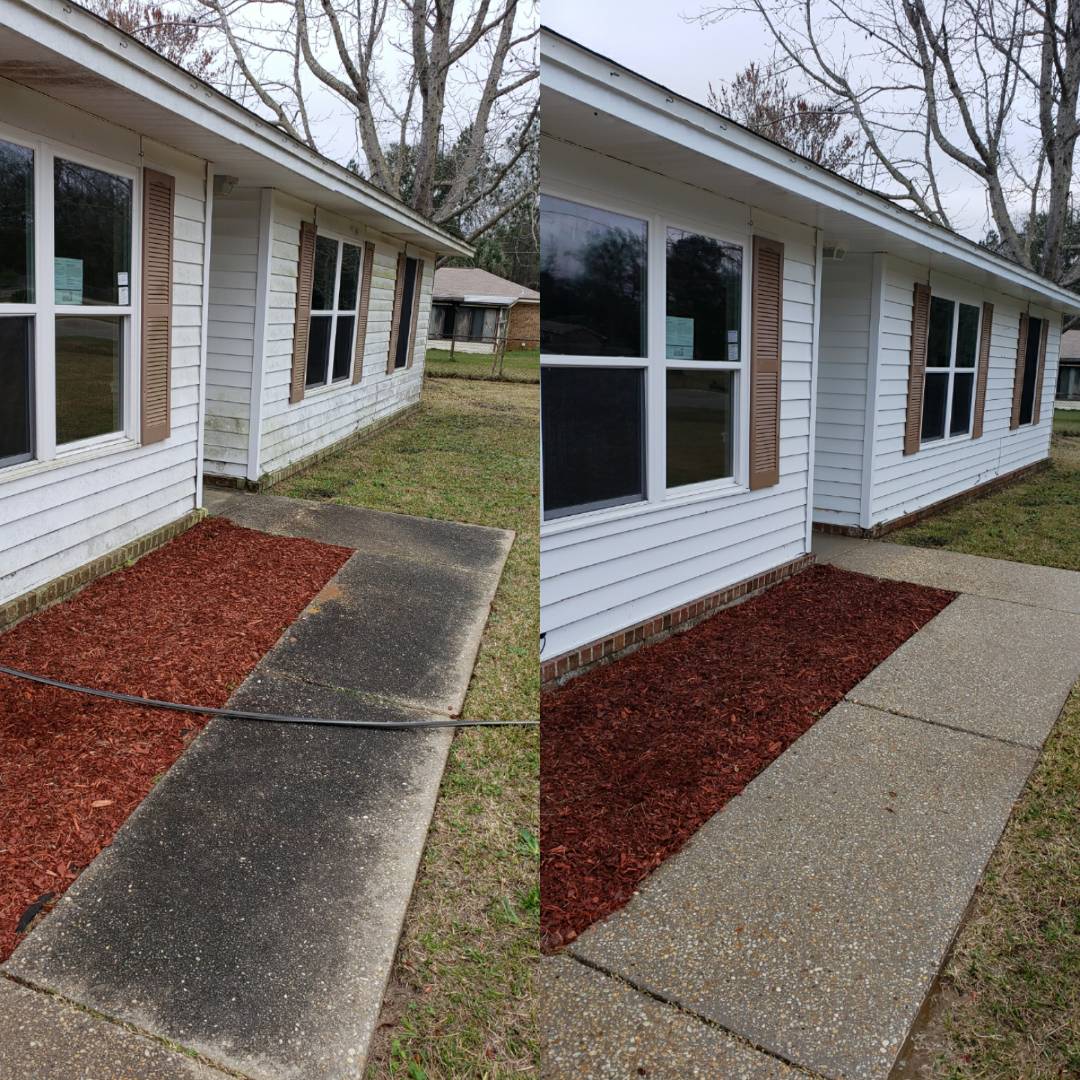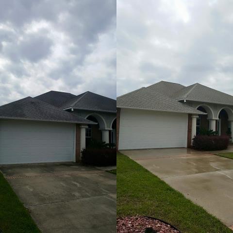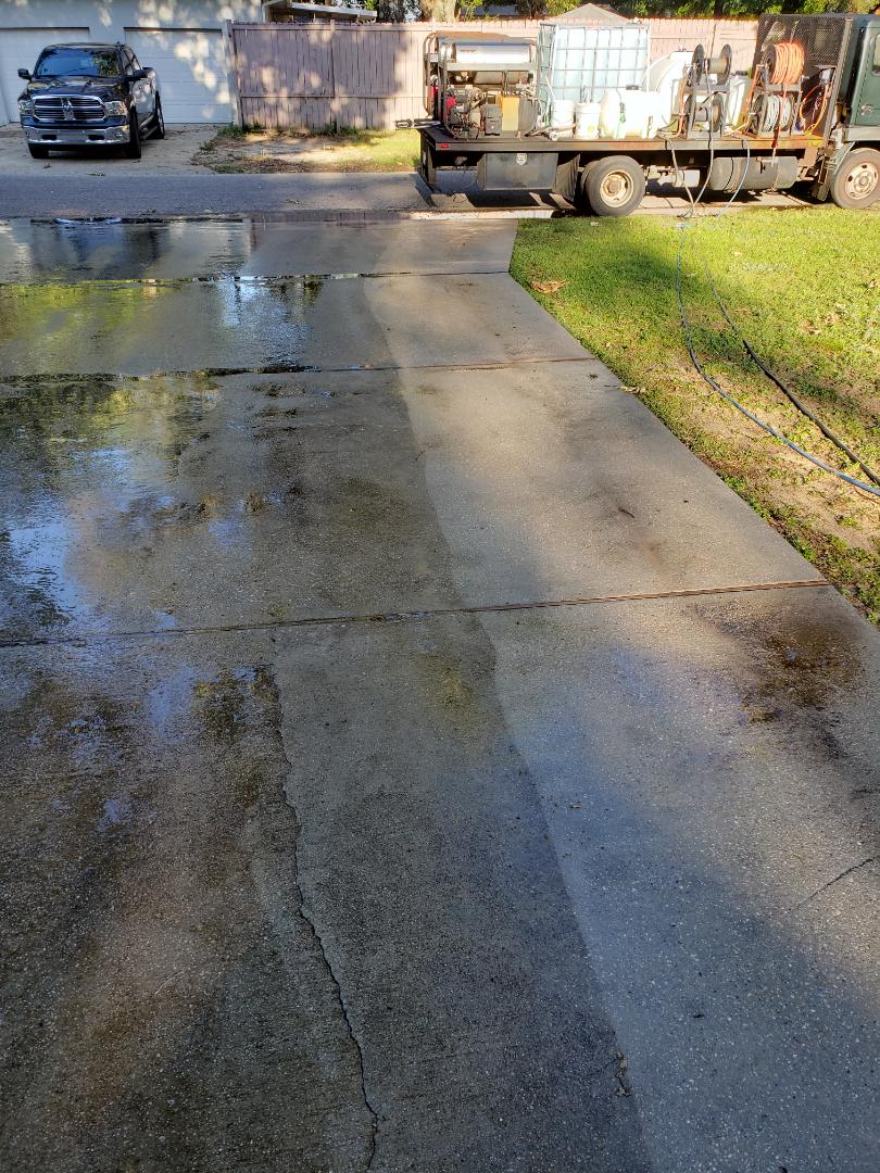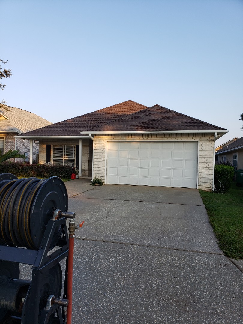Pressure washing house, driveway and sidewalk Nature Trail Pensacola Florida.