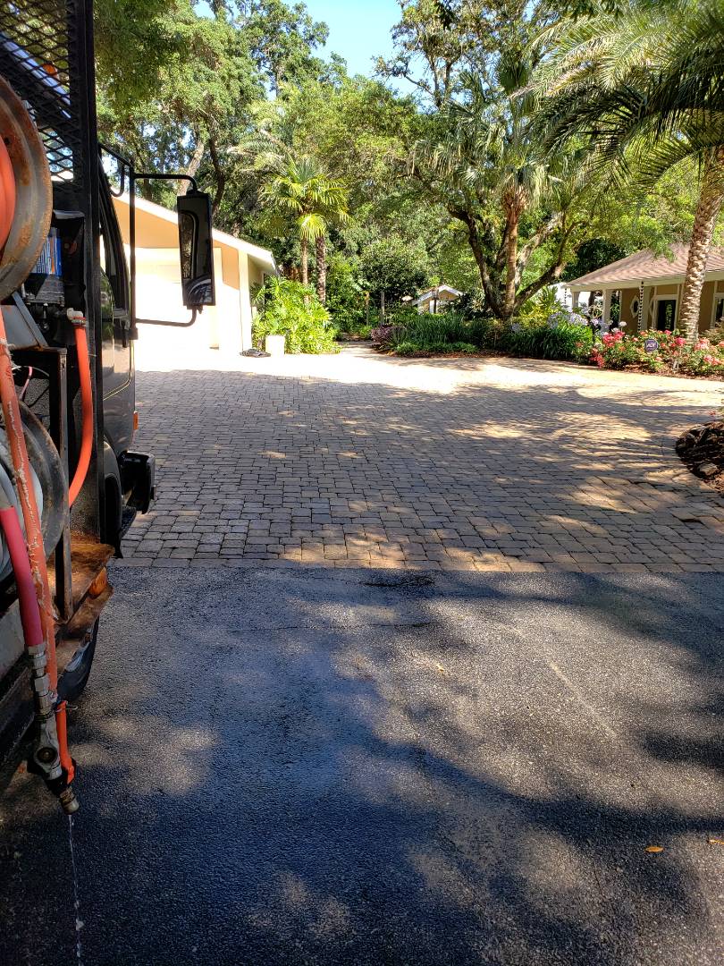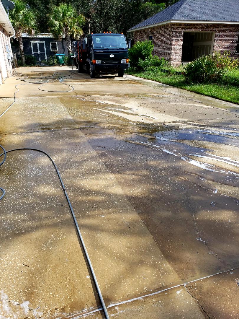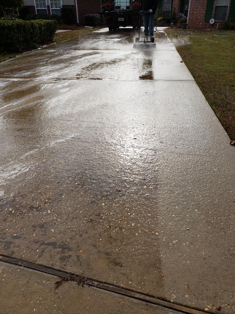 Pressure washing driveways, sidewalks & curbs in Pensacola Florida.