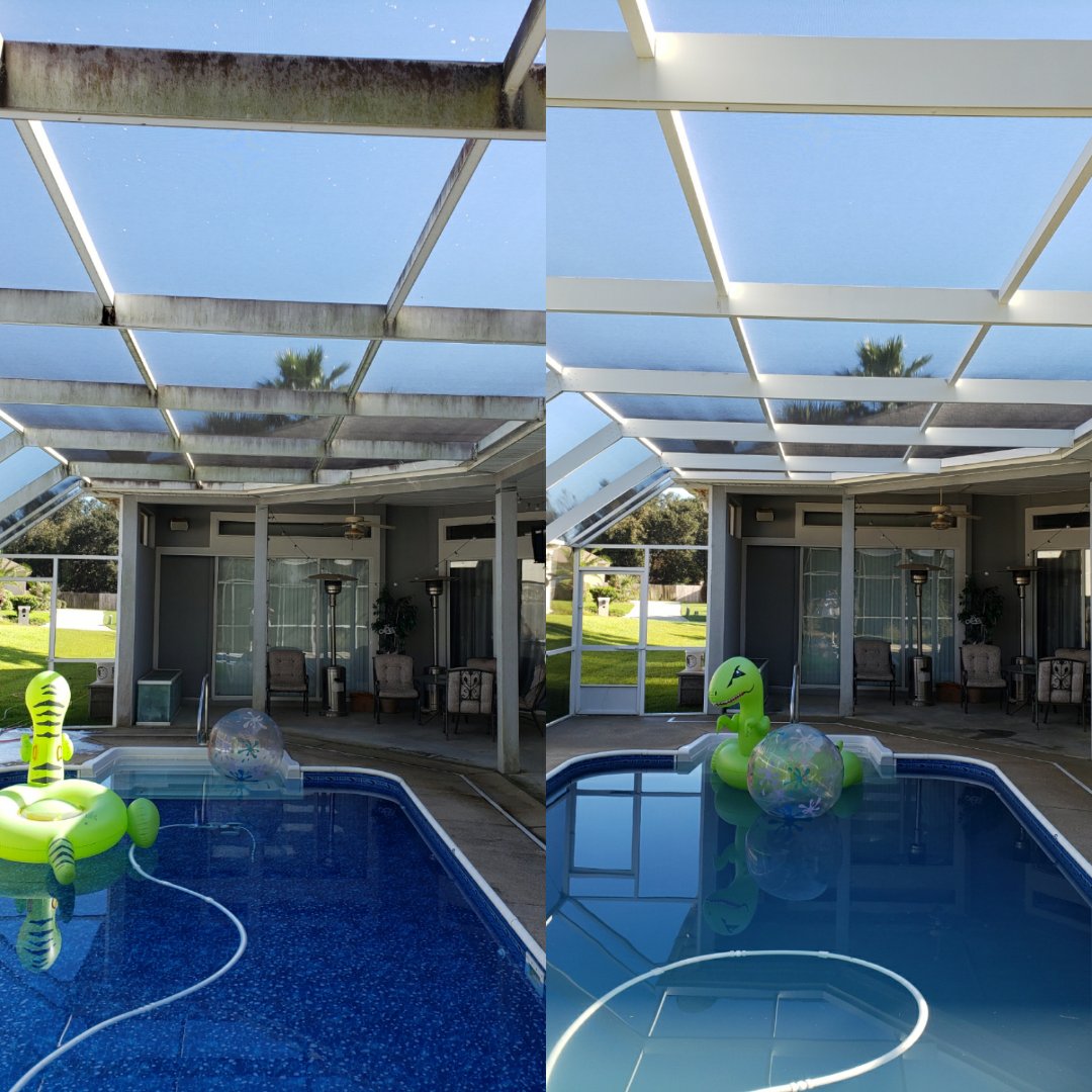Pool enclosure cleaning in Nature Trail Pensacola.